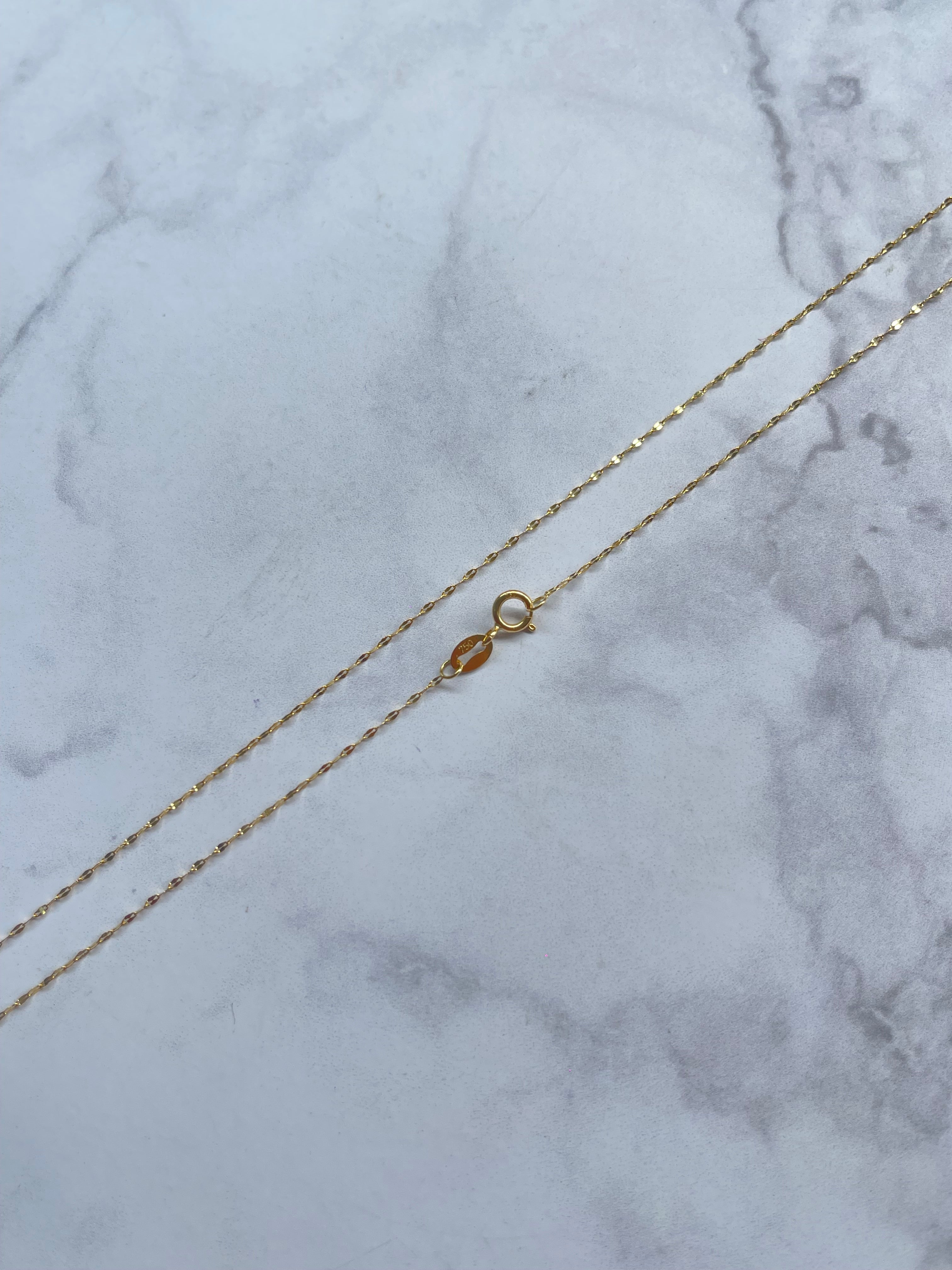 Limpieza suave y regular 💧 Límpiala con agua tibia, un poco de jabón neutro y un cepillo de cerdas suaves. Luego sécala con un paño de microfibra. Almacenamiento adecuado 📦 Guarda cada joya por separado en su estuche o en bolsitas de tela para evitar rayaduras por fricción. Evita golpes y rozaduras ⚡ Aunque el oro 18k es resistente, puede rayarse con facilidad si se golpea o se guarda junto con piezas duras. No uses la joya en ciertas actividades 🏋️♂️🏊♀️ Quítatela para hacer ejercicio, dormir, bañarte en piscinas o playas, ya que el sudor, el cloro y la sal pueden afectar su apariencia. Mantenimiento profesional 🛠️ Lleva tus joyas a limpieza y pulido profesional cada cierto tiempo para conservar su brillo original.