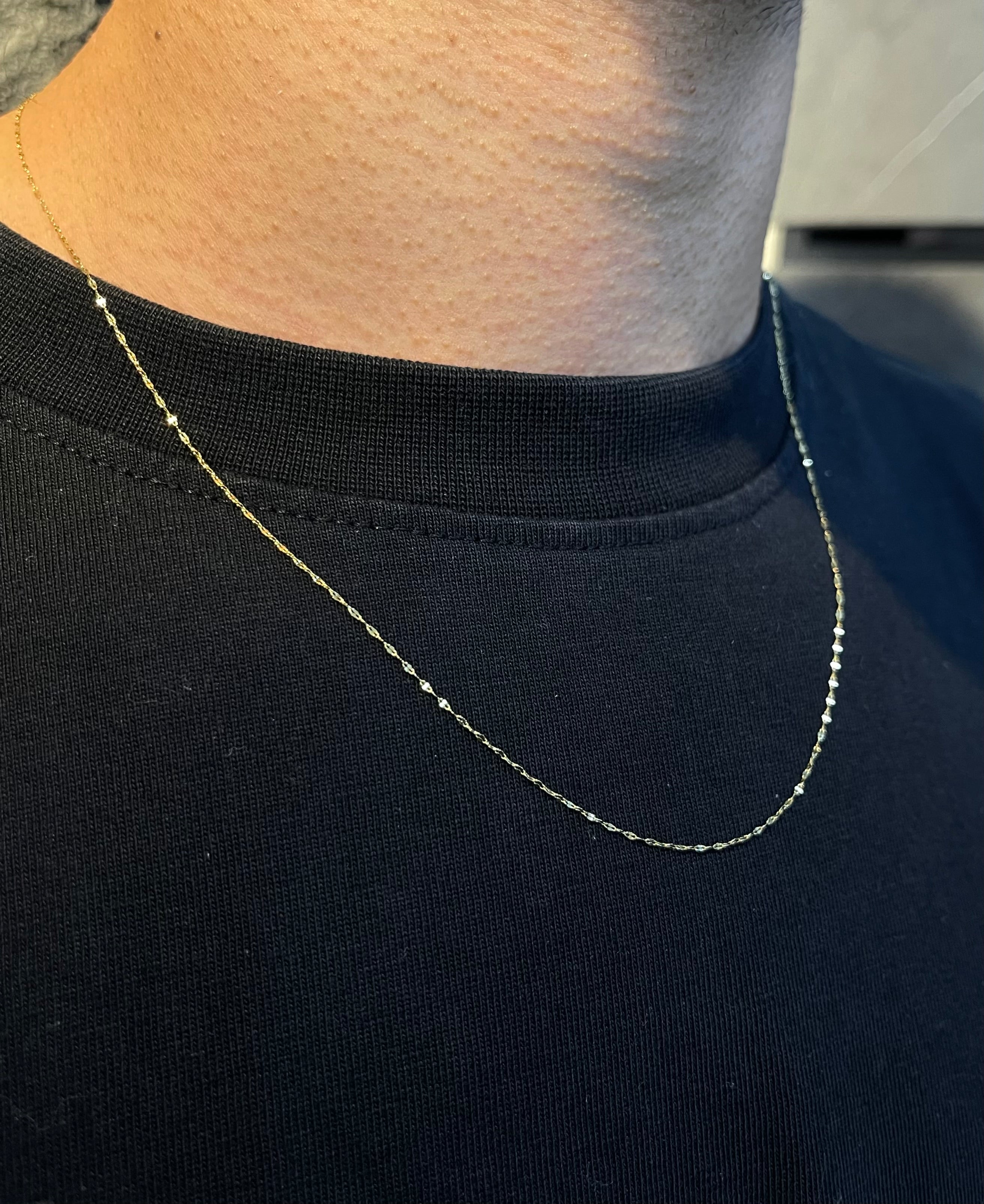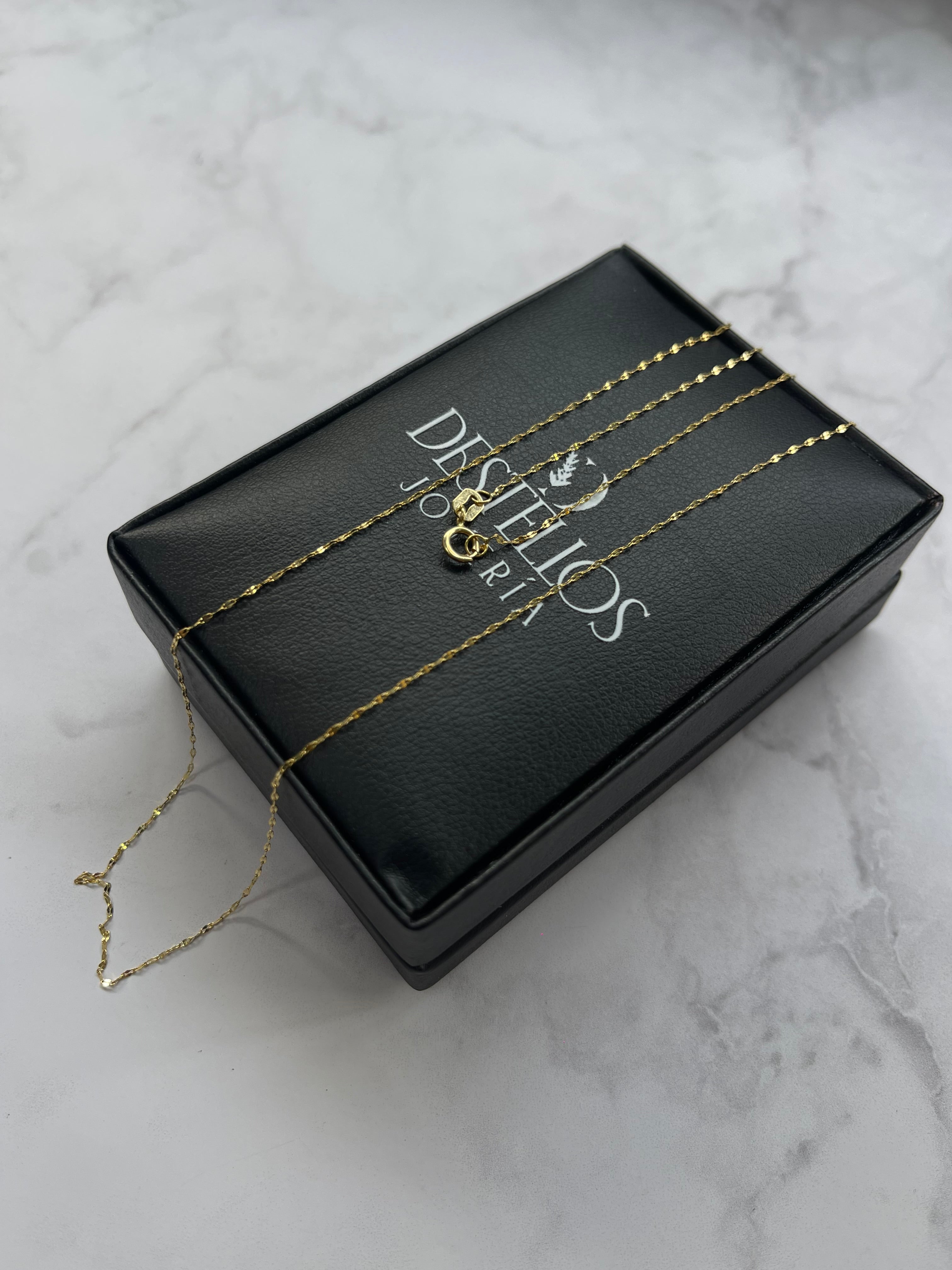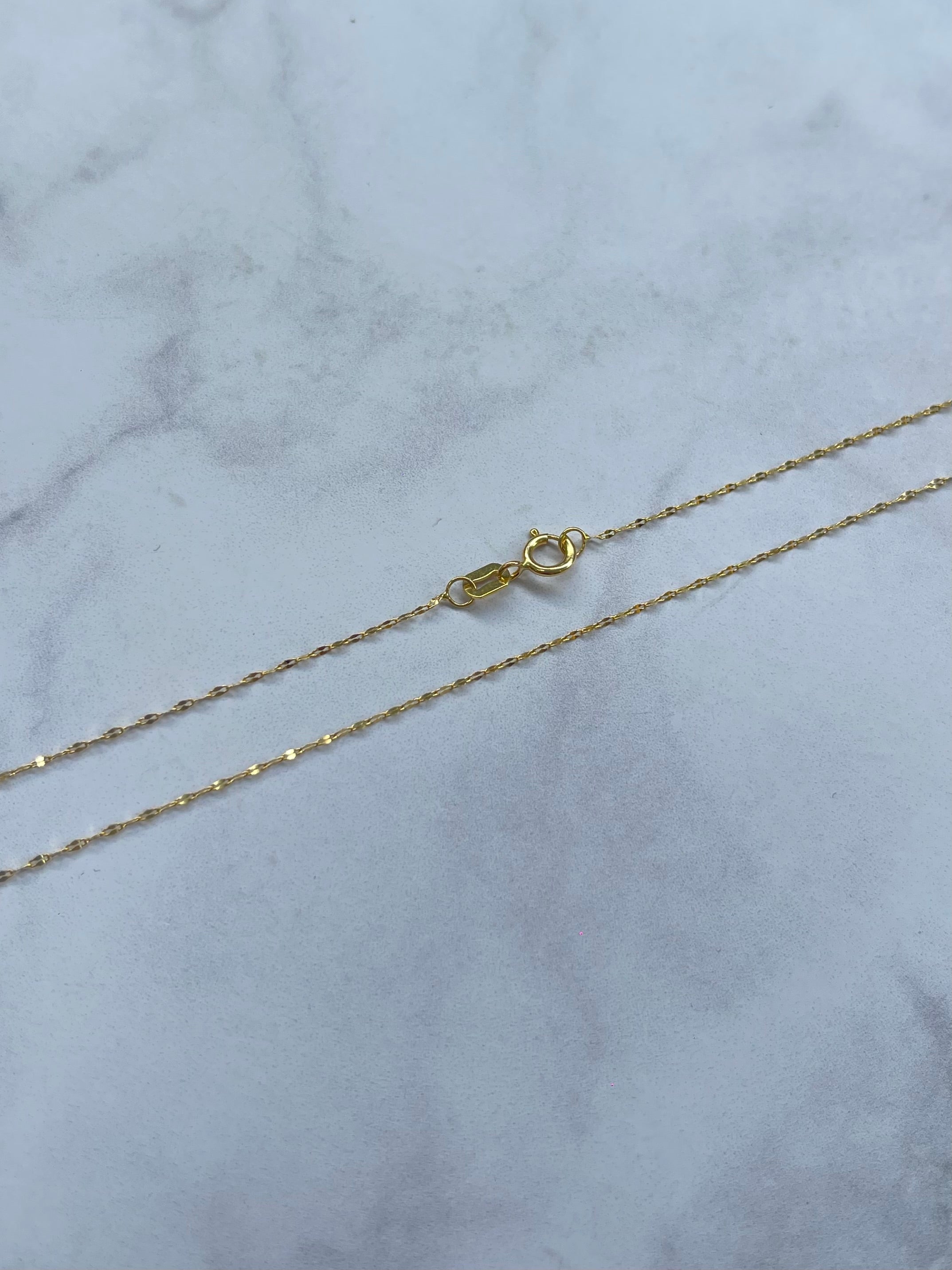 Limpieza suave y regular 💧 Límpiala con agua tibia, un poco de jabón neutro y un cepillo de cerdas suaves. Luego sécala con un paño de microfibra. Almacenamiento adecuado 📦 Guarda cada joya por separado en su estuche o en bolsitas de tela para evitar rayaduras por fricción. Evita golpes y rozaduras ⚡ Aunque el oro 18k es resistente, puede rayarse con facilidad si se golpea o se guarda junto con piezas duras. No uses la joya en ciertas actividades 🏋️♂️🏊♀️ Quítatela para hacer ejercicio, dormir, bañarte en piscinas o playas, ya que el sudor, el cloro y la sal pueden afectar su apariencia. Mantenimiento profesional 🛠️ Lleva tus joyas a limpieza y pulido profesional cada cierto tiempo para conservar su brillo original.